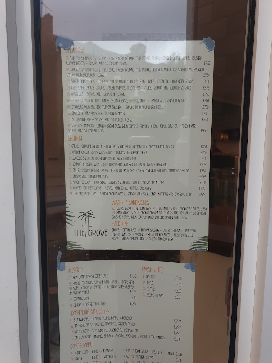 The menu features a delightful selection of main plates such as the Grilled Chicken Stir-Fry and Beef Lasagne, each priced reasonably. For brunch enthusiasts, indulgent options like the Grove Platter and Cheese and Tomato Toasties steal the show. Don’t forget to try the creamy Carrot Cake for dessert—it's a sweet finishing touch!